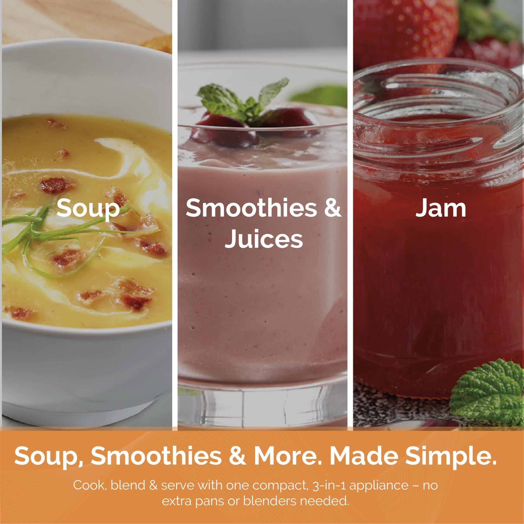 - 3-in-1 Functionality for Everyday Ease: Blend, cook & serve soups, smoothies or jam with one smart machine – no separate pans or blenders needed.